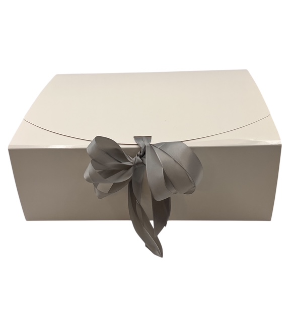 Make your gift feel like a special occasion with our glossy white luxury gift boxes—designed to impress without the stress. Each box comes pre-filled, polished, and ready to give, finished with a delicate silver satin ribbon that adds a touch of refined elegance.